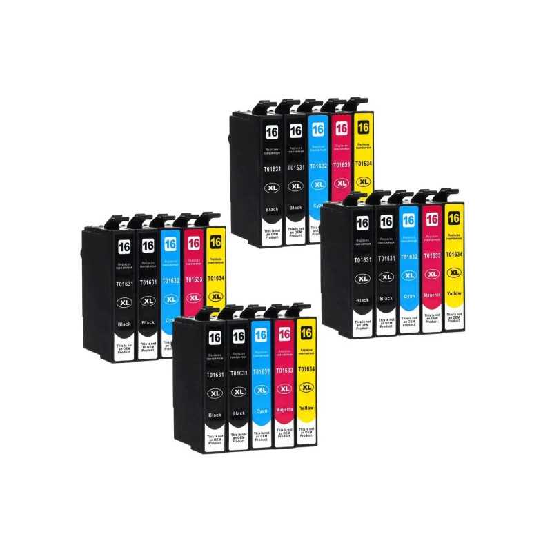 Pack de 5 Tinteiros Compatíveis com Epson 16XL constituído por: